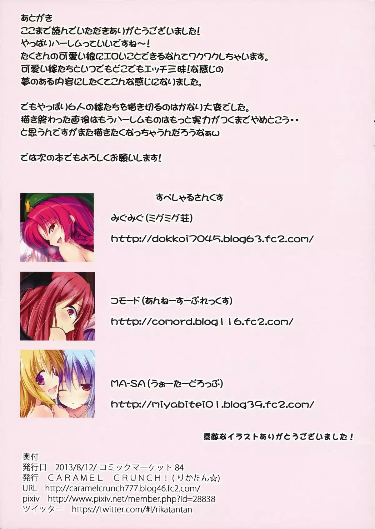 (C84) [CARAMEL CRUNCH! (Various)] Harem Gensoukyou 2 ~Watashitachi no Dannasama~ (Touhou Project) Hentai (C84) [CARAMEL CRUNCH! (よろず)] ハーレム幻想郷2~私たちの旦那様~ (東方Project)