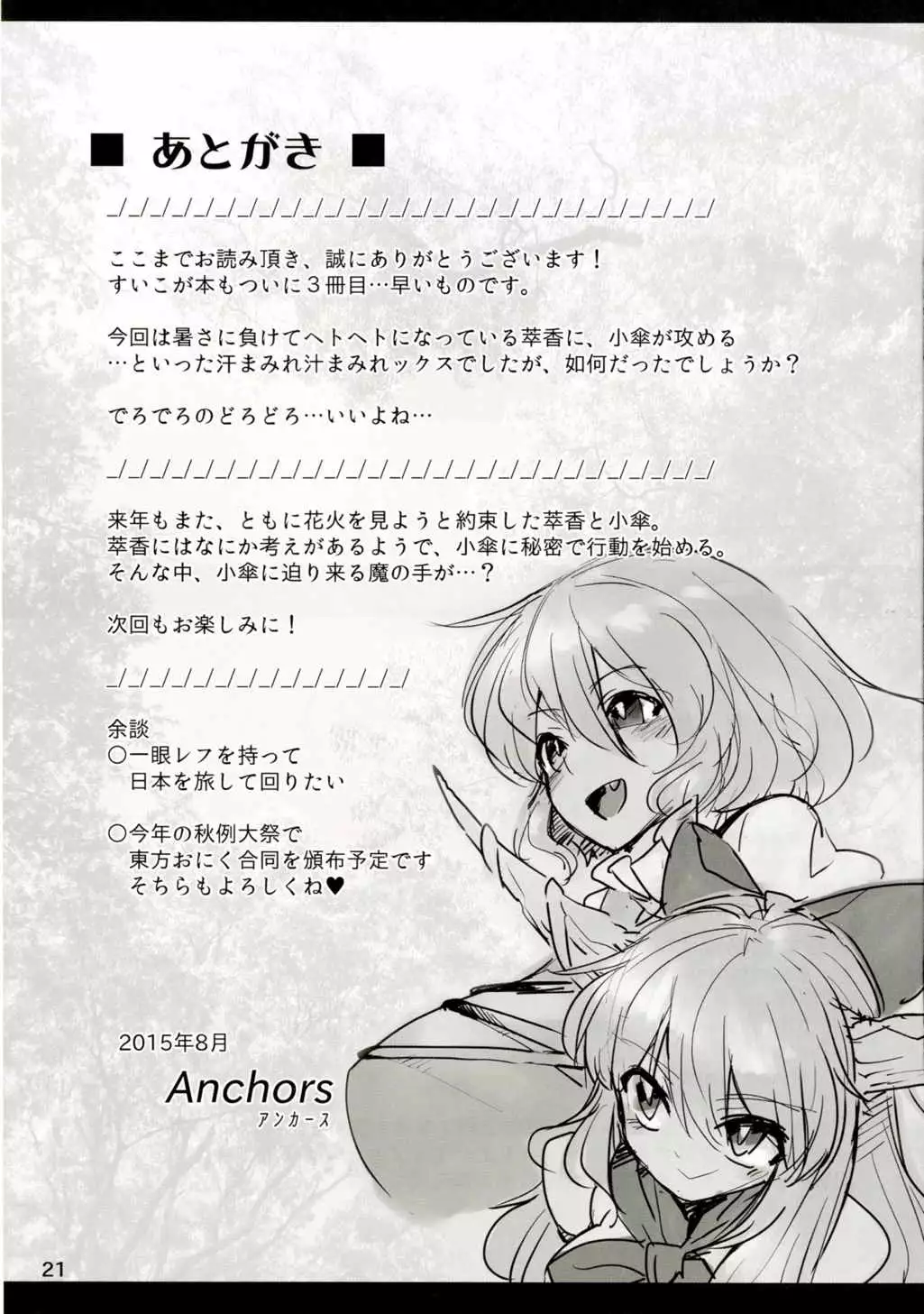 (C88) [Hermit9 (Anchors)] Suteki na Sato de Kurashimasho San (Touhou Project) Hentai (C88) [ハーミット9 (Anchors)] 素敵な郷で暮らしましょ参 (東方Project)