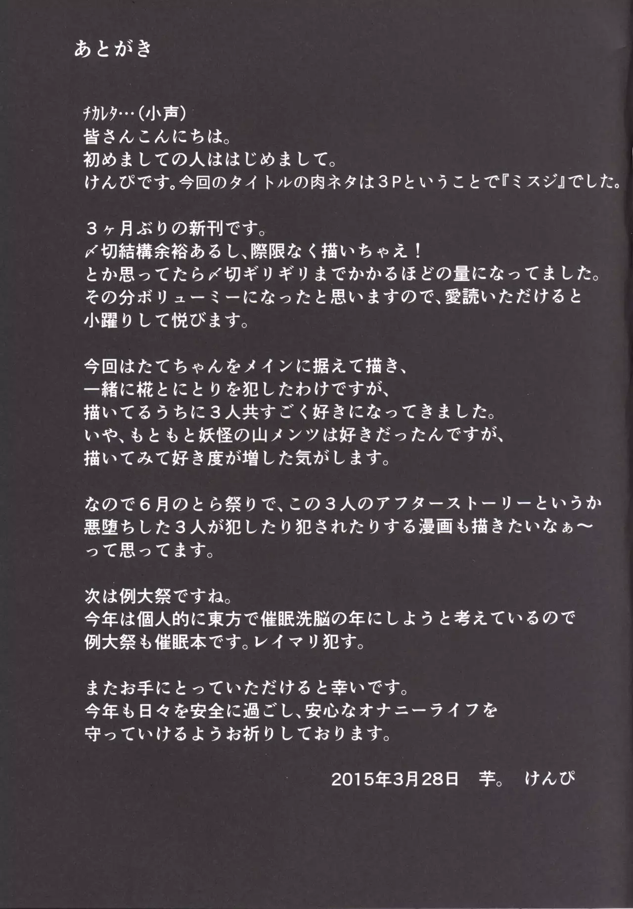 [Imomaru (Kenpi)] MISUJI (Touhou Project) [English] [robypoo] [Digital] Hentai [芋。 (けんぴ)] 三筋 (東方Project) [英訳] [DL版]
