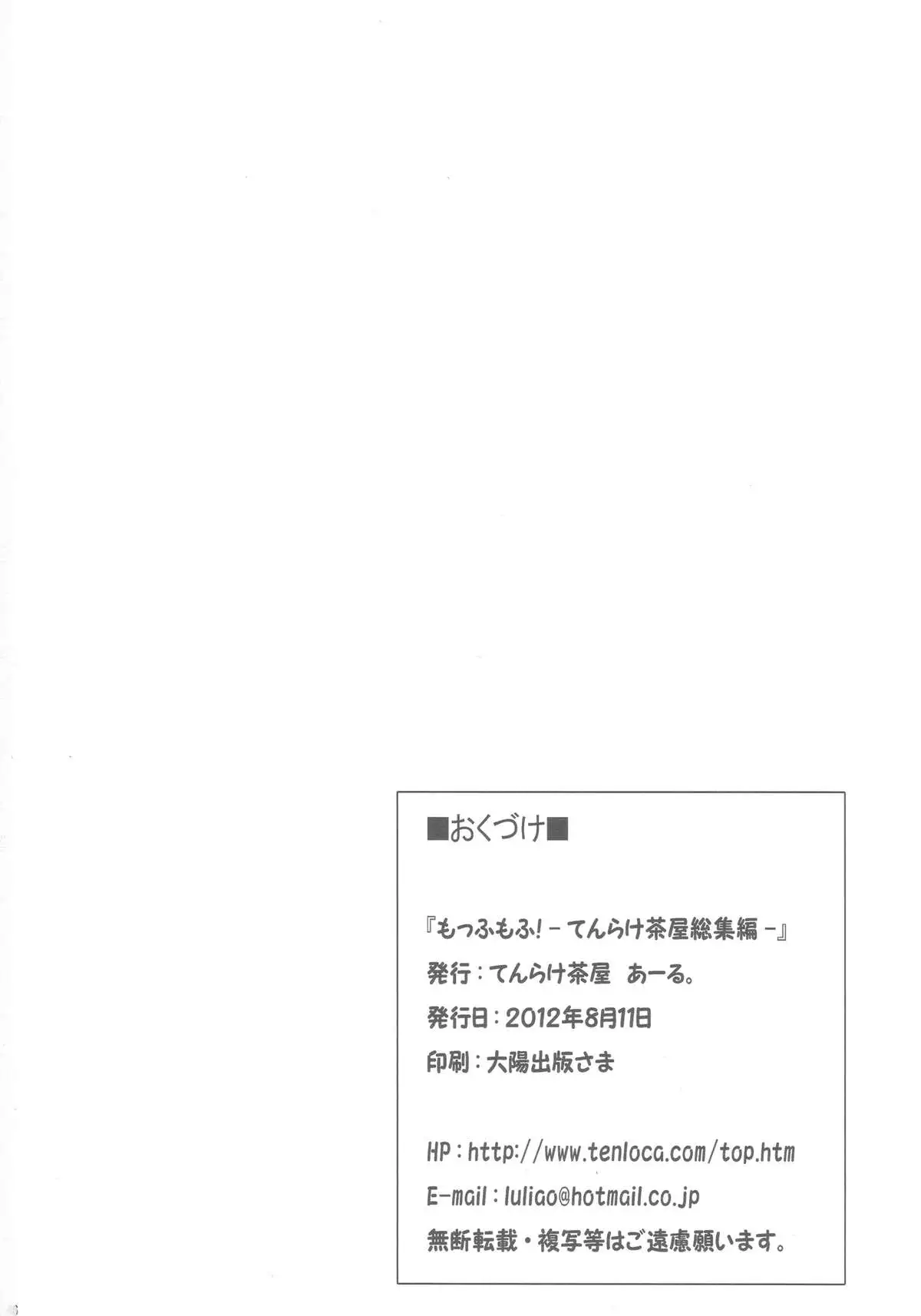(C82) [Tenrake Chaya (Ahru.)] Moffumofu! -Tenrake Chaya Soushuuhen- (Touhou Project) Hentai (C82) [てんらけ茶屋 (あーる。)] もっふもふ!-てんらけ茶屋総集編- (東方Project)