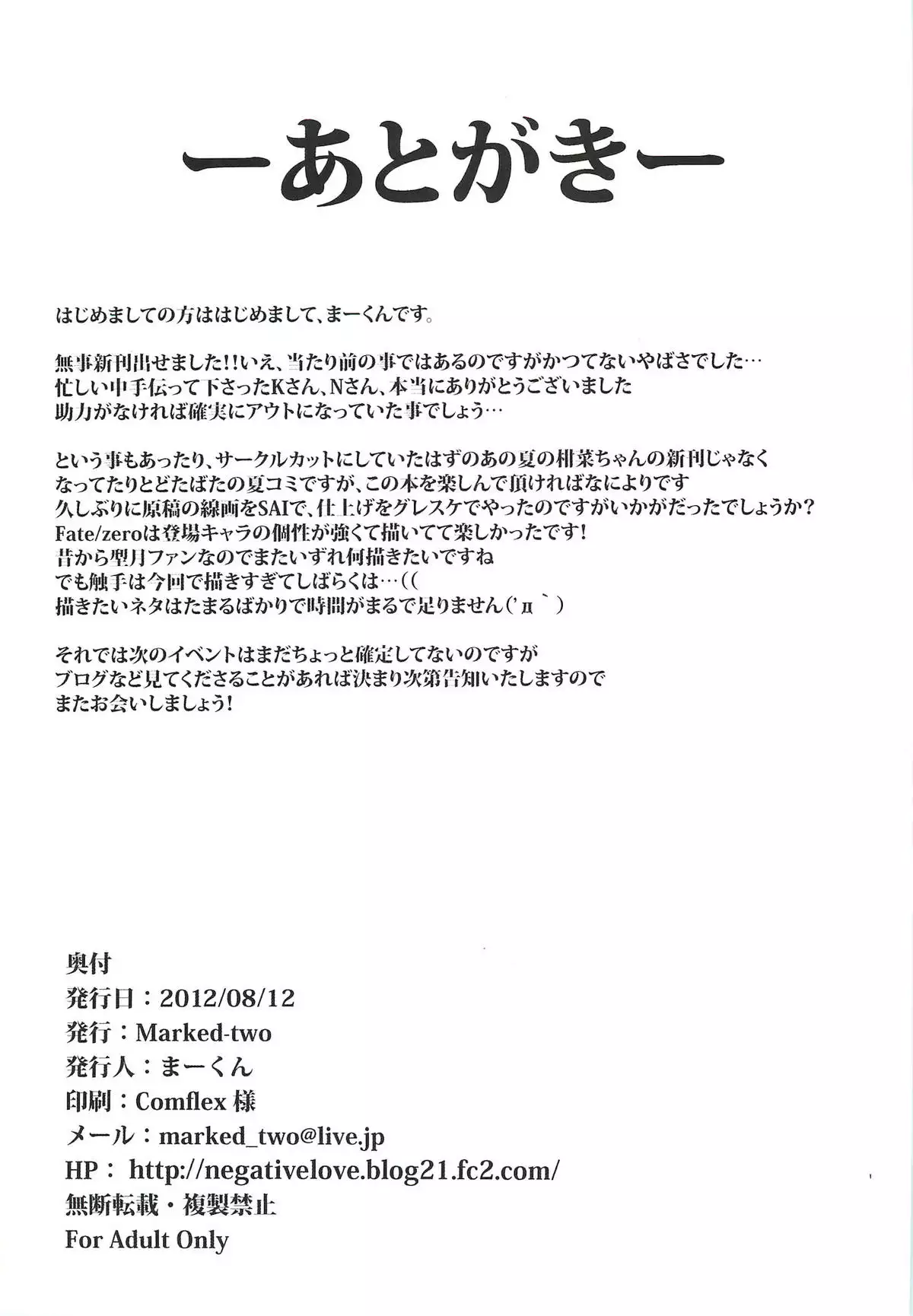 (C82) [Marked-two (Maa-kun)] Immoral/Zero (Fate/Zero) Hentai (C82) [Marked-two (まーくん)] Immoral/Zero (Fate/Zero)