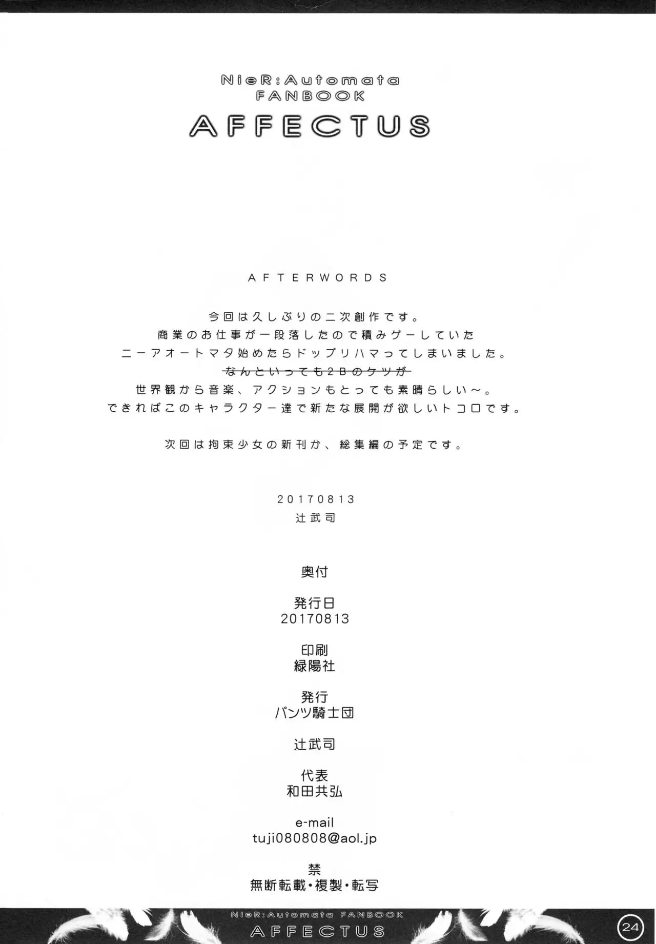 (C92) [The Knight of the Pants (Tsuji Takeshi)] AFFECTUS (NieR:Automata) Hentai (C92) [パンツ騎士団 (辻武司)] AFFECTUS (ニーア オートマタ)