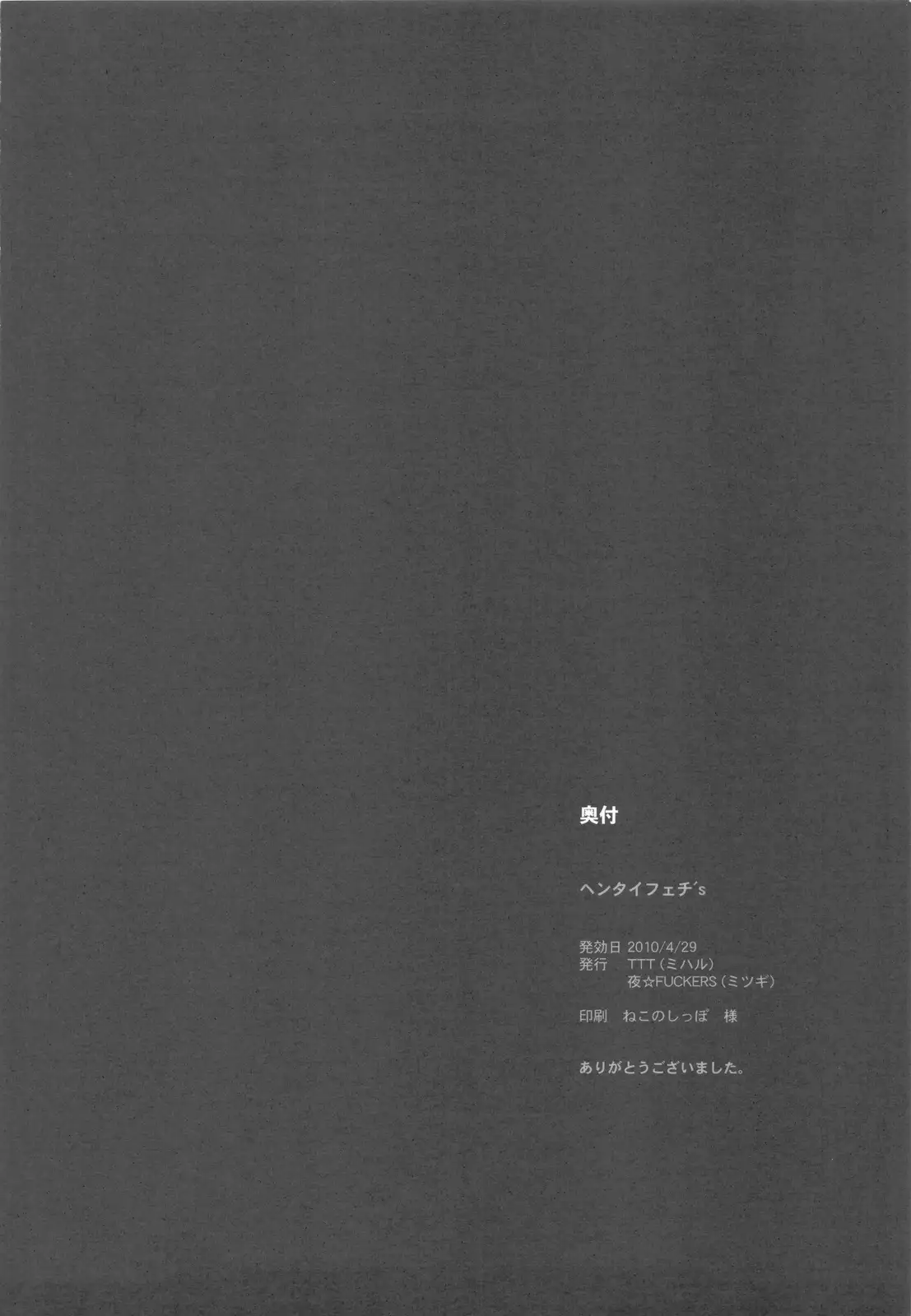 (COMIC1☆4) [TTT, Night FUCKERS (Miharu, Mitsugi)] Hentai Fetish's Hentai (COMIC1☆4) [TTT, 夜★FUCKERS (ミハル, ミツギ)] ヘンタイフェチ's