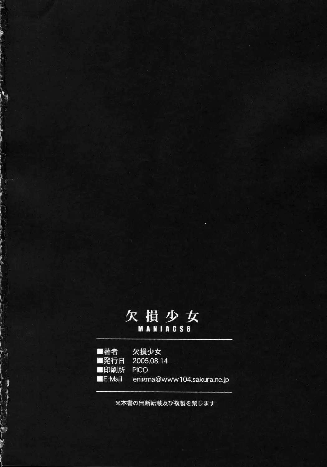 (C68) [Kesson Shoujo (Enigma)] Kesson Shoujo MANIACS 6 Hentai (C68) [欠損少女 (えにぐま)] 欠損少女 MANIACS 6