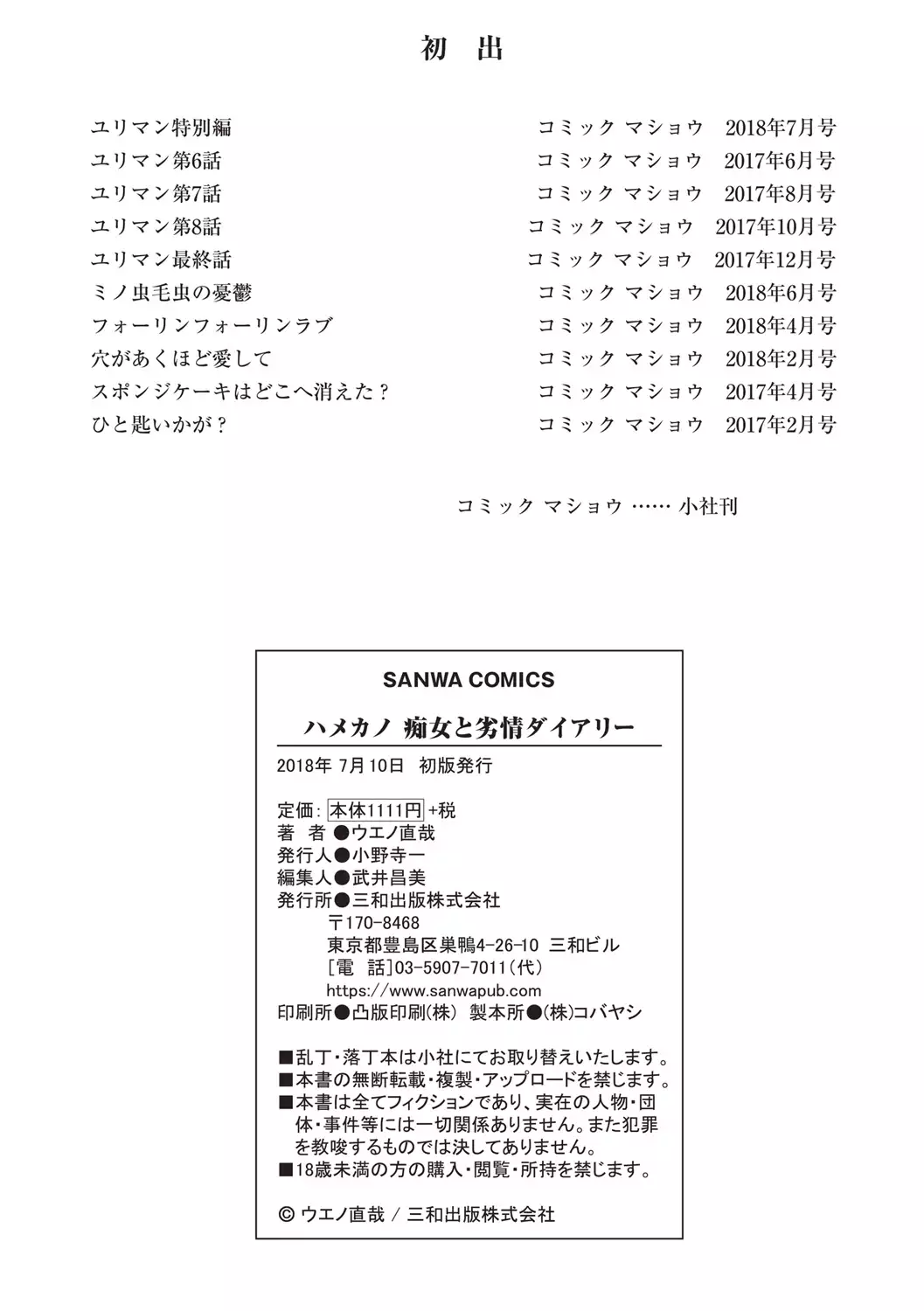 [Ueno Naoya] Hamekano Chijo to Retsujou Diary - Diary of Slut & Inferiority [Chinese]