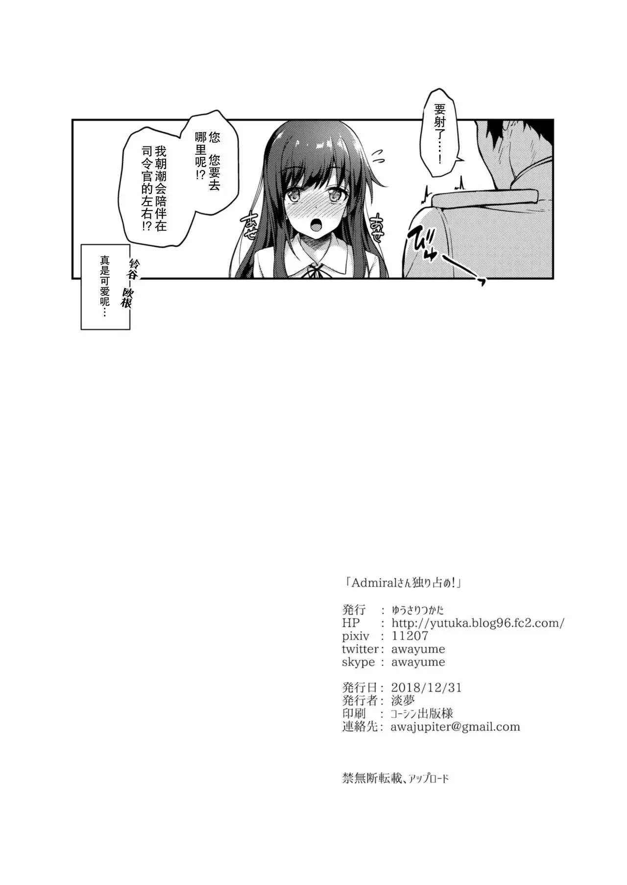 [Yusaritsukata (Awayume)] Admiral-san Hitorijime! (Kantai Collection -KanColle-) [Chinese] [胸垫汉化组] [Digital] Hentai [ゆうさりつかた (淡夢)] Admiralさん独り占め! (艦隊これくしょん -艦これ-) [中国翻訳] [DL版]