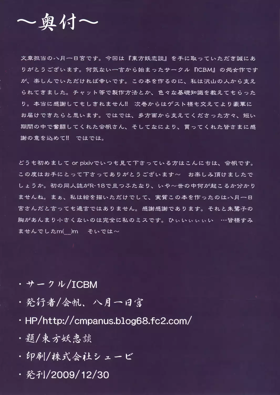 (C77) [ICBM (Kaiho, Hozunomiya)] Touhou Youren dan (Touhou Project) Hentai (C77) [ICBM (会帆, 八月一日宮)] 東方妖恋談 (東方Project)