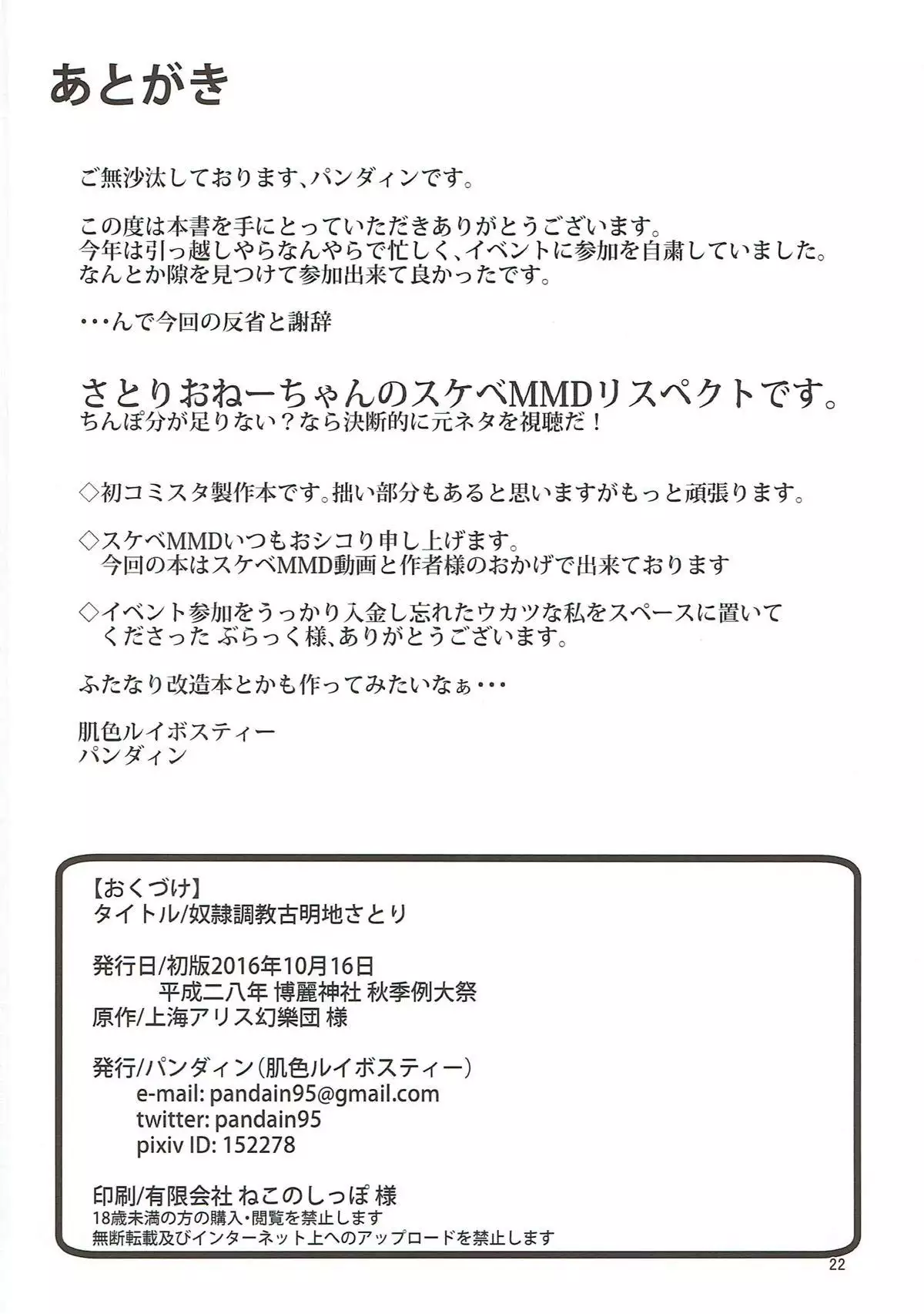 (Shuuki Reitaisai 3) [Hadairo Rooibos Tea (Pandain)] Dorei Choukyou Komeiji Satori (Touhou Project)