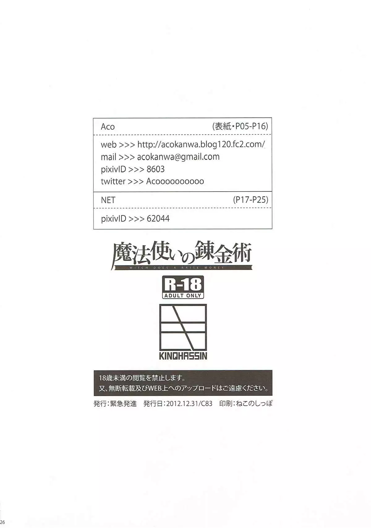 (C83) [Kinqhassin (Aco, NET)] Mahoutsukai no Renkinjutsu (Mahou Tsukai no Yoru) Hentai (C83) [緊急発進 (Aco、NET)] 魔法使いの錬金術 (魔法使いの夜)