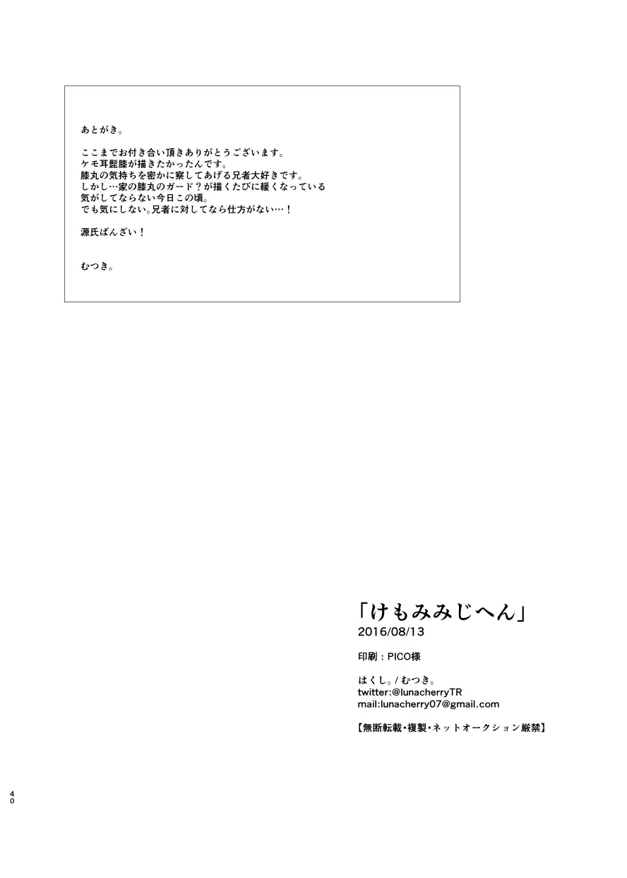 [hakushi. (mutuki.)] けもみみじへん。 (Touken Ranbu) [Digital] Hentai [はくし。 (むつき。)] けもみみじへん。 (刀剣乱舞) [DL版]